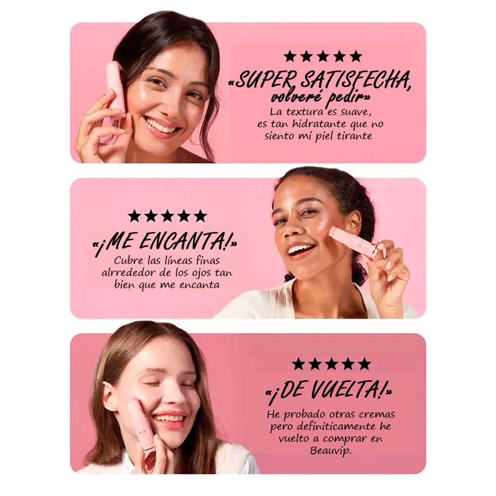 Su textura liviana y sin fragancias añadidas innecesarias, se desliza suavemente, sin dejar residuos ni sensación grasa, incluso en las zonas más sensibles como el contorno de ojos o los labios.