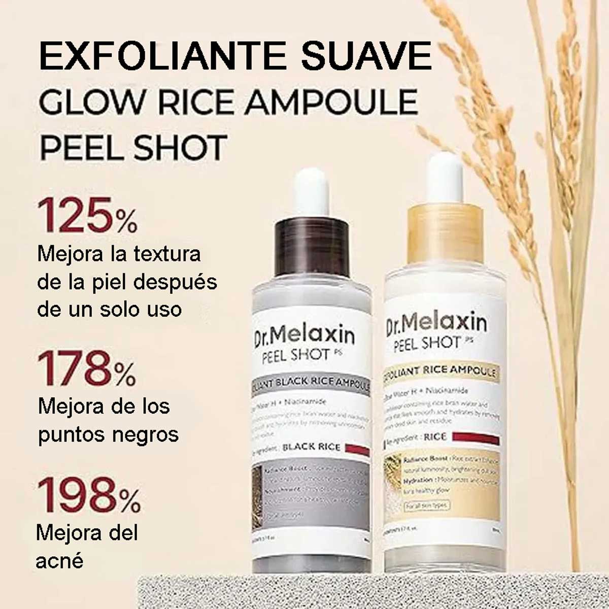 Descubre el poder de los granos de arroz en tu piel y transforma tu rutina facial con la esencia exfoliante de arroz blanco y negro. Hidratación profunda, exfoliación suave y piel radiante para todo tipo de pieles. 🌿 Con esta esencia exfoliante e hidratante, tu rostro se verá más suave, luminoso y protegido desde la primera aplicación.