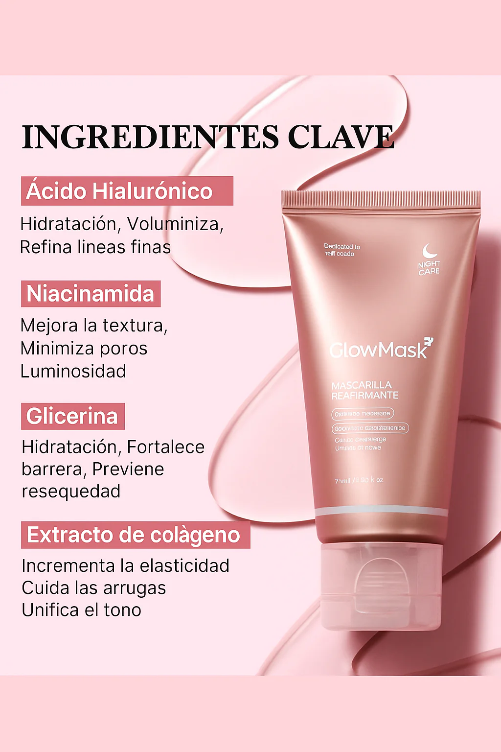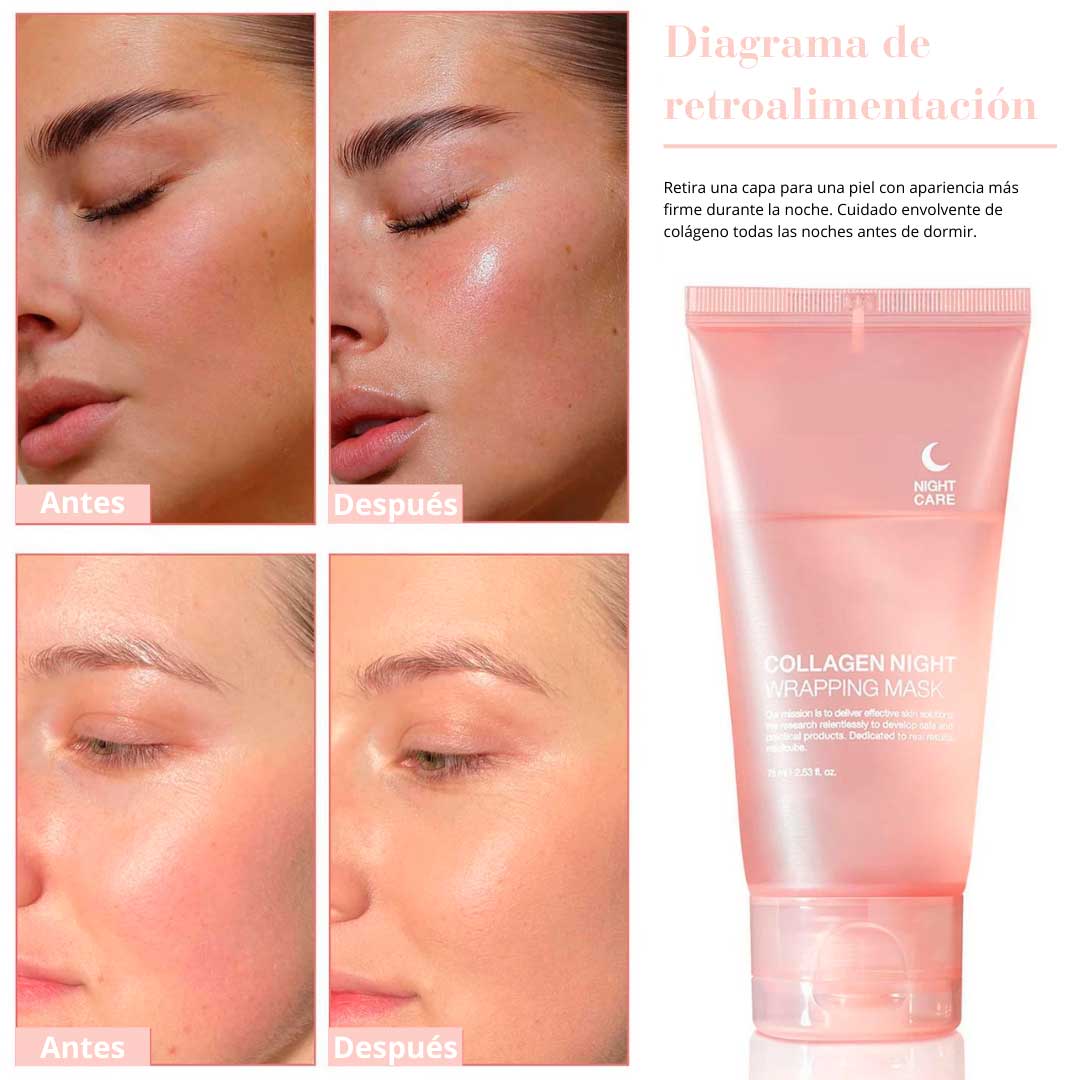 La Mascarilla Facial Nocturna de Colágeno está diseñada para que, mientras duermes, tu rostro reciba un tratamiento intensivo que hidrata, reafirma y devuelve vitalidad a tu piel.